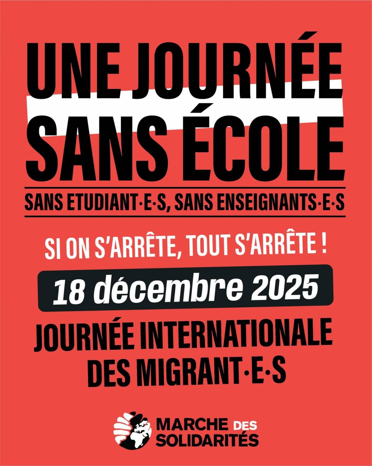 SUD éducation Paris est signataire de l'appel à la Journée sans nous du 18 décembre 2025, retranscrit ci-dessous.