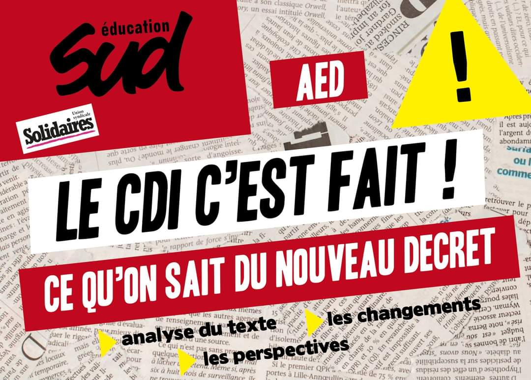 La CDIsation n'est désormais plus une hypothèse ou une probabilité. Les AED ayant 6 années d'ancienneté doivent donc pouvoir y accéder dès le 1er septembre 2022 ! En cas de refus de renouvellement du contrat en CDI, les chef·fes d'établissement doivent justifier leur décision. Quel que soit leur situation, nous invitons les AED concerné·e par la CDIsation à contacter très rapidement le syndicat SUD éducation de leur département pour assurer le suivi et la bonne application des textes.