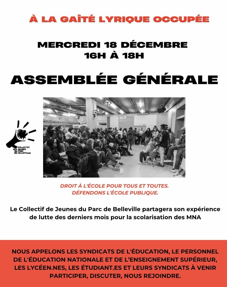Le collectif des Jeunes du Parc de Belleville partagera son expérience de lutte des derniers mois pour la scolarisation des MNA